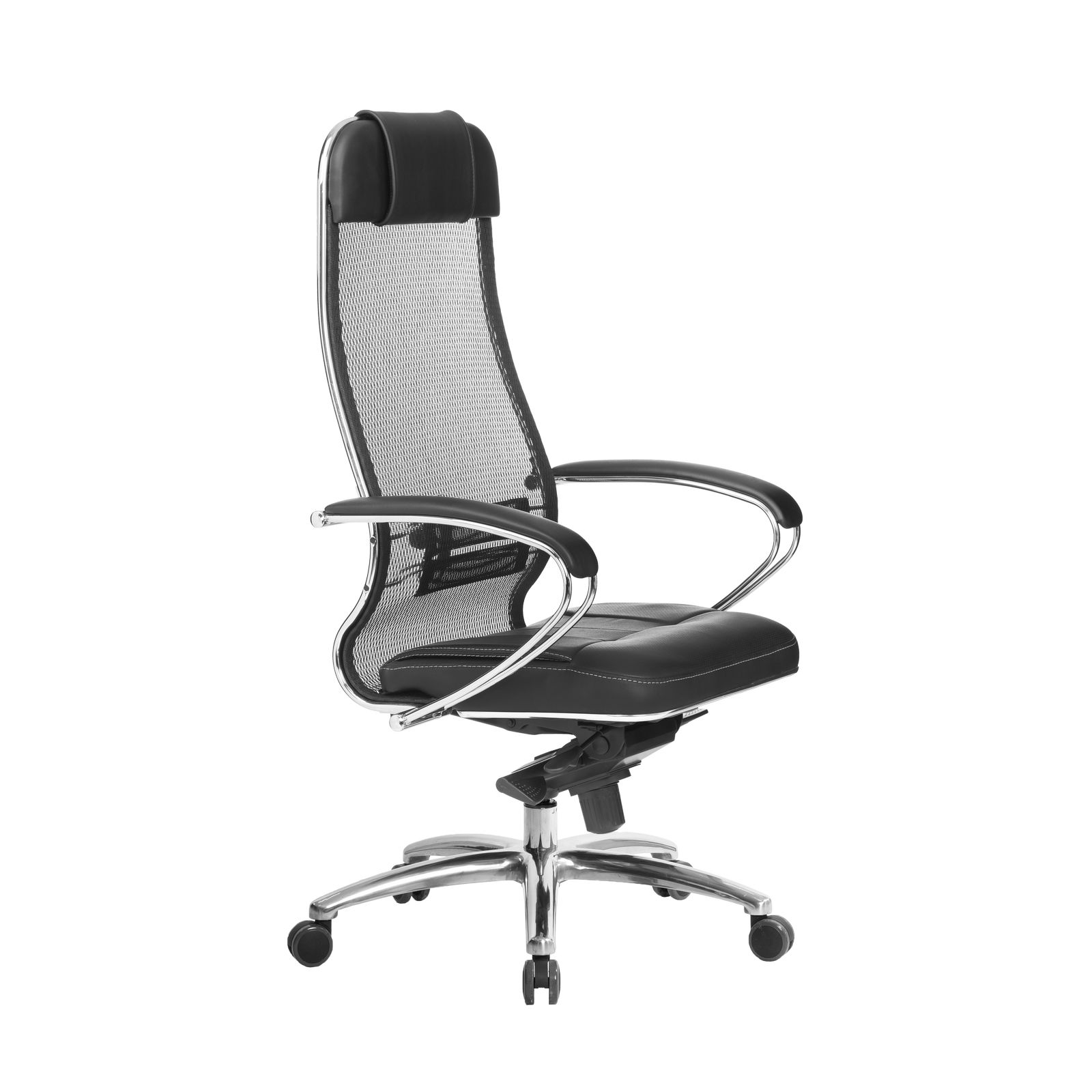 Подлокотники: стальные хромированные, с мягкими накладками из износостойкого материала NewLeather*